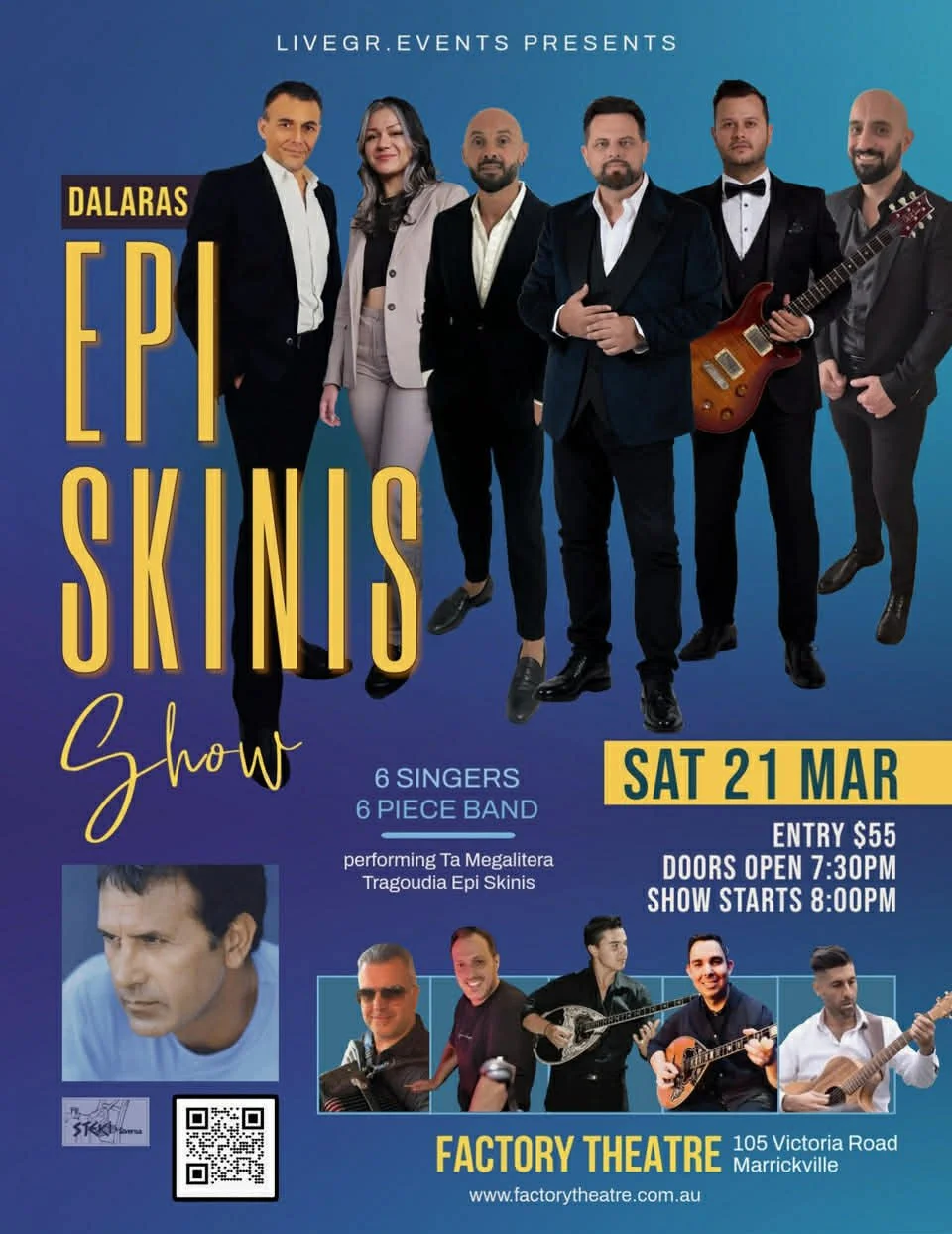 This concert draws inspiration from Dalaras’ monumental six-CD live anthology, Epi Skinis—a collection of over 90 performances spanning decades of musical brilliance. From this treasure trove, we've handpicked 35 songs that showcase the depth, emotion, and artistry that have made Dalaras a true icon of Greek music.